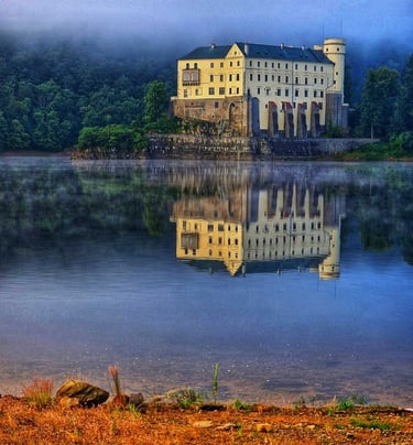 Zřícenina hradu Vrškamýk u obce Kamýk na Vltavou, dětské starověké hřiště a vyhlídková věž